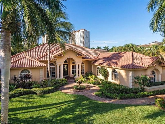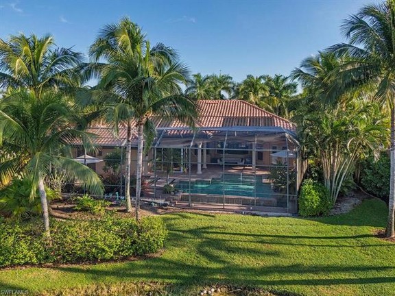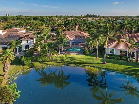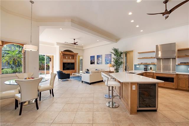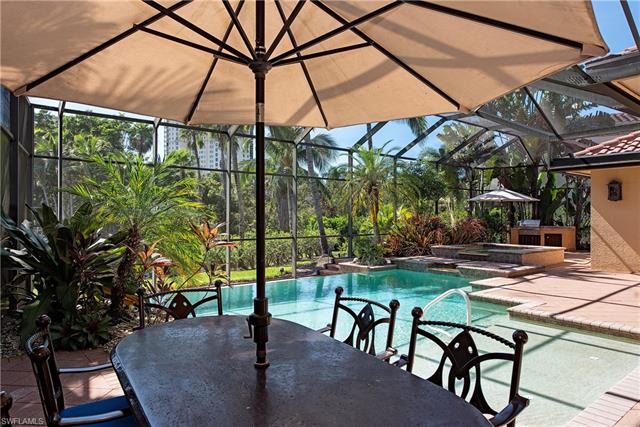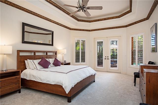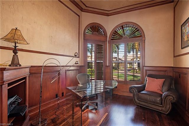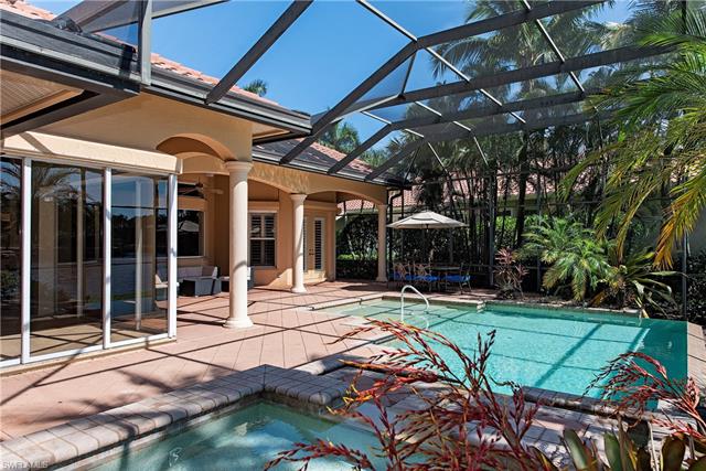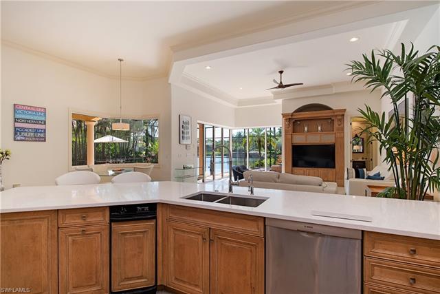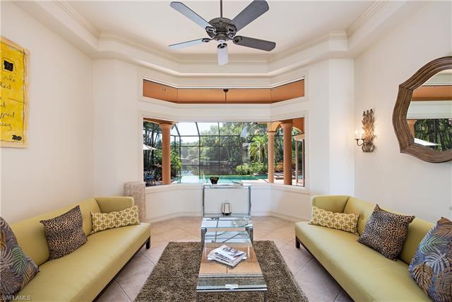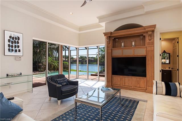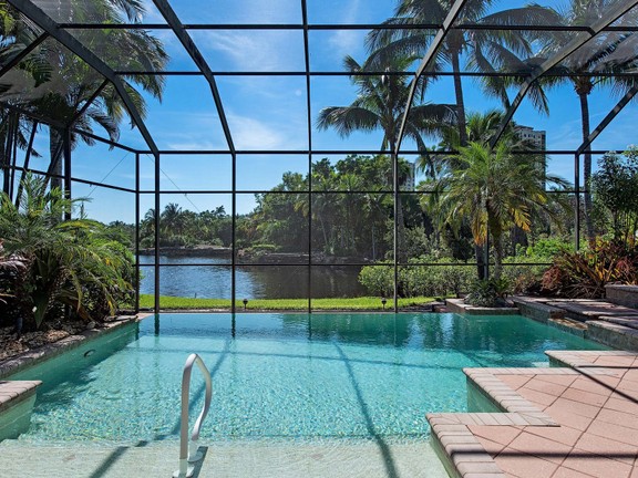 It’s all about the view in this spacious custom home in Bellagio at The Colony Golf and Bay Club. The Living Room, Family/Kitchen area and Master Bedroom all enjoy beautiful views to the large screened lanai with perfectly placed infinity edge pool and spa to the Bellagio Lake and extensive fountains. While only a handful of homes enjoy this coveted view, this one is further advantaged by its southwestern orientation. Home features 4 bedrooms + Den, large family room and updated kitchen with new quartz counters, glass backsplash and floating shelves. The master bedroom suite enjoys pool access and has updated spa type bath with free standing soaking tub. Home features 3 car garage with one bay being used as an exercise room, wall could be easily removed to restore 3rd bay. Hurricane protection provided by q combination of electric and acrylic shutters Living at The Colony affords use of amenities which include the Bay Club with formal and informal waterfront dining, kayak/canoe park, tennis, pickleball and a private 34-acre island beach park. Equity golf/sports memberships are optional at the updated Colony Golf Club